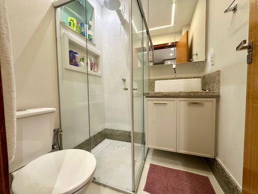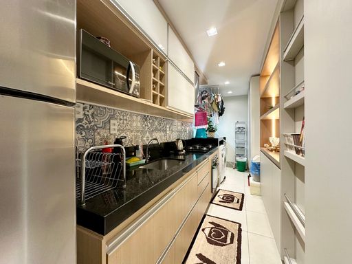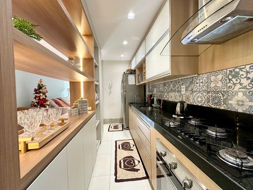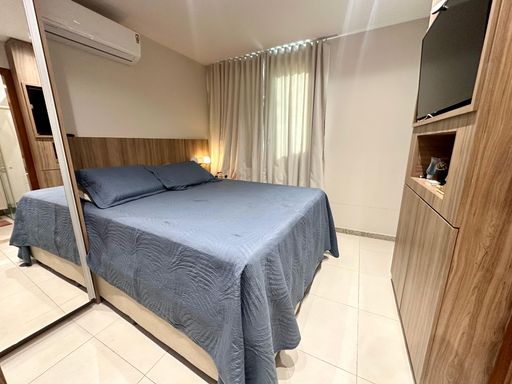 Atenção! O apartamento é semimobiliado, com móveis planejados em diversos ambientes já inclusos, como armários da cozinha, armários da sala, armários nos dois quartos, cama do quarto de solteiro, armário nos banheiros e 02 aparelhos de ar-condicionado.