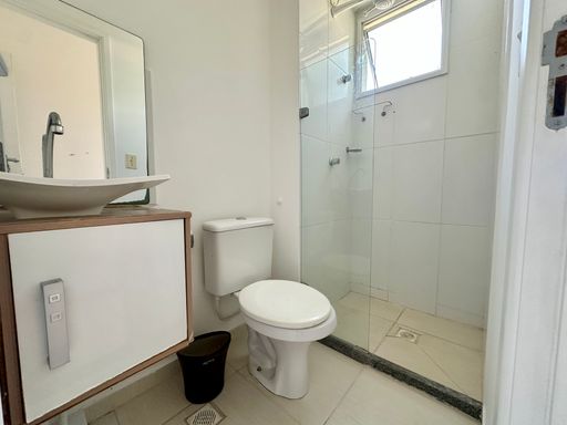 Com 55m2, o apartamento possui uma divisão de cômodos inteligente, contendo sala, cozinha, área de serviço, banheiro social, varanda e 02 quartos, sendo uma suíte. Também oferece 01 vaga de garagem.