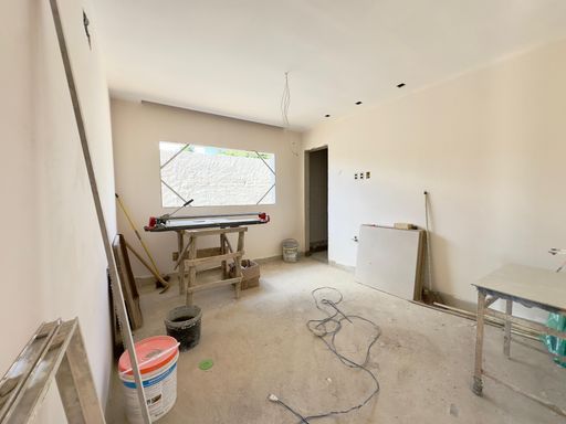 Com 109,46 m² de área construída, o imóvel possui projeto moderno e bem distribuído, com 3 quartos (1 suíte), sala e cozinha integradas, além de área de serviço e garagem coberta.