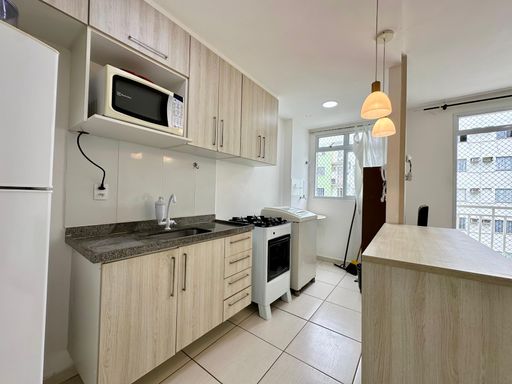 O apartamento é bem arejado e iluminado. Possui integração entre sala de TV, copa e cozinha, além de 02 quartos, 01 banheiro social, área de serviço e uma sacada com vista panorâmica para o Rio Doce.