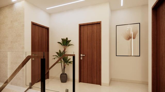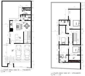 - Pavimento superior: 03 dormitórios, sendo uma suíte com closet, e banheiro social.